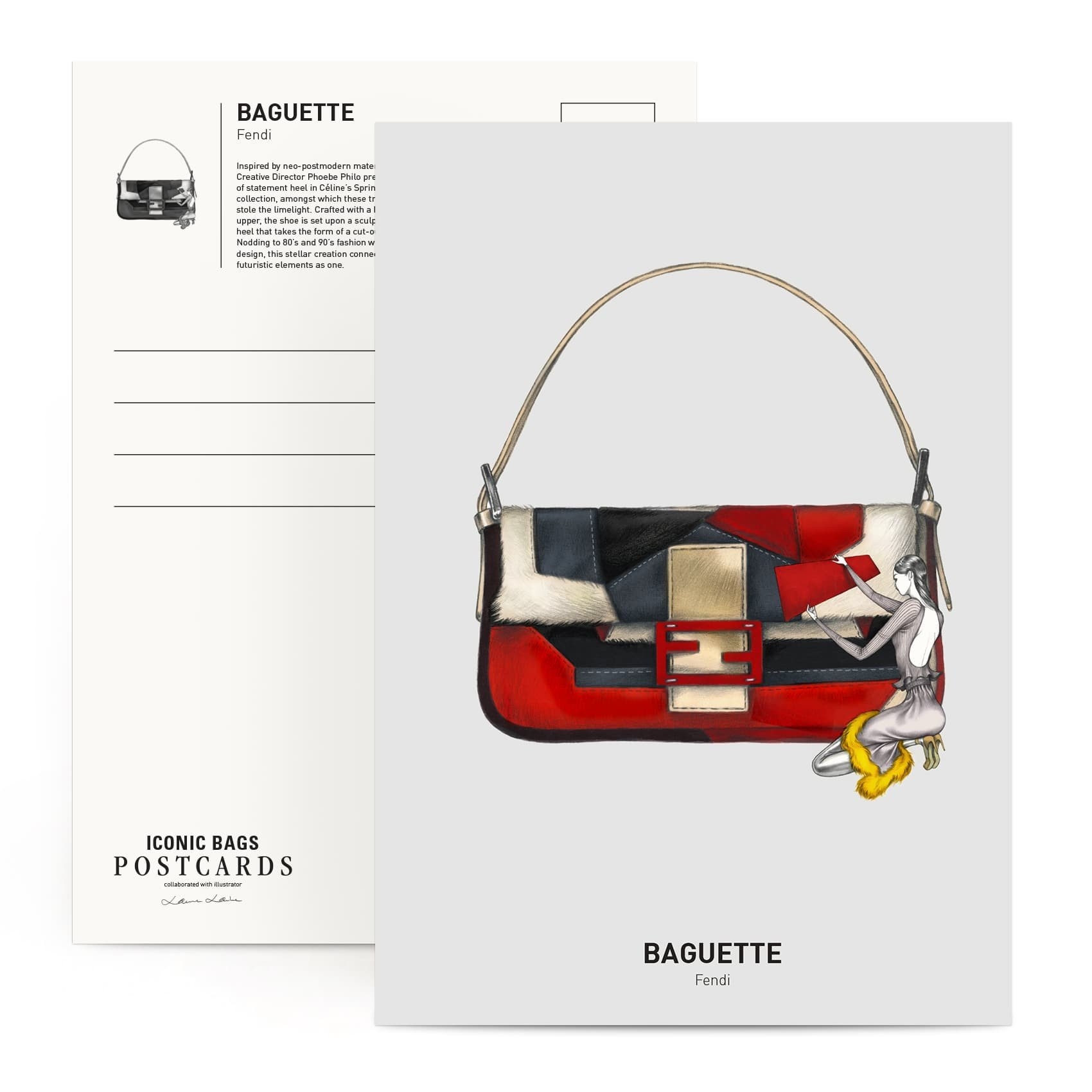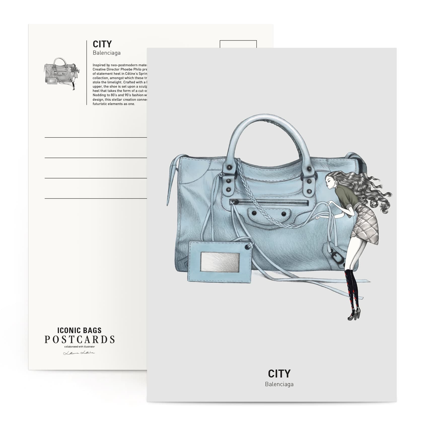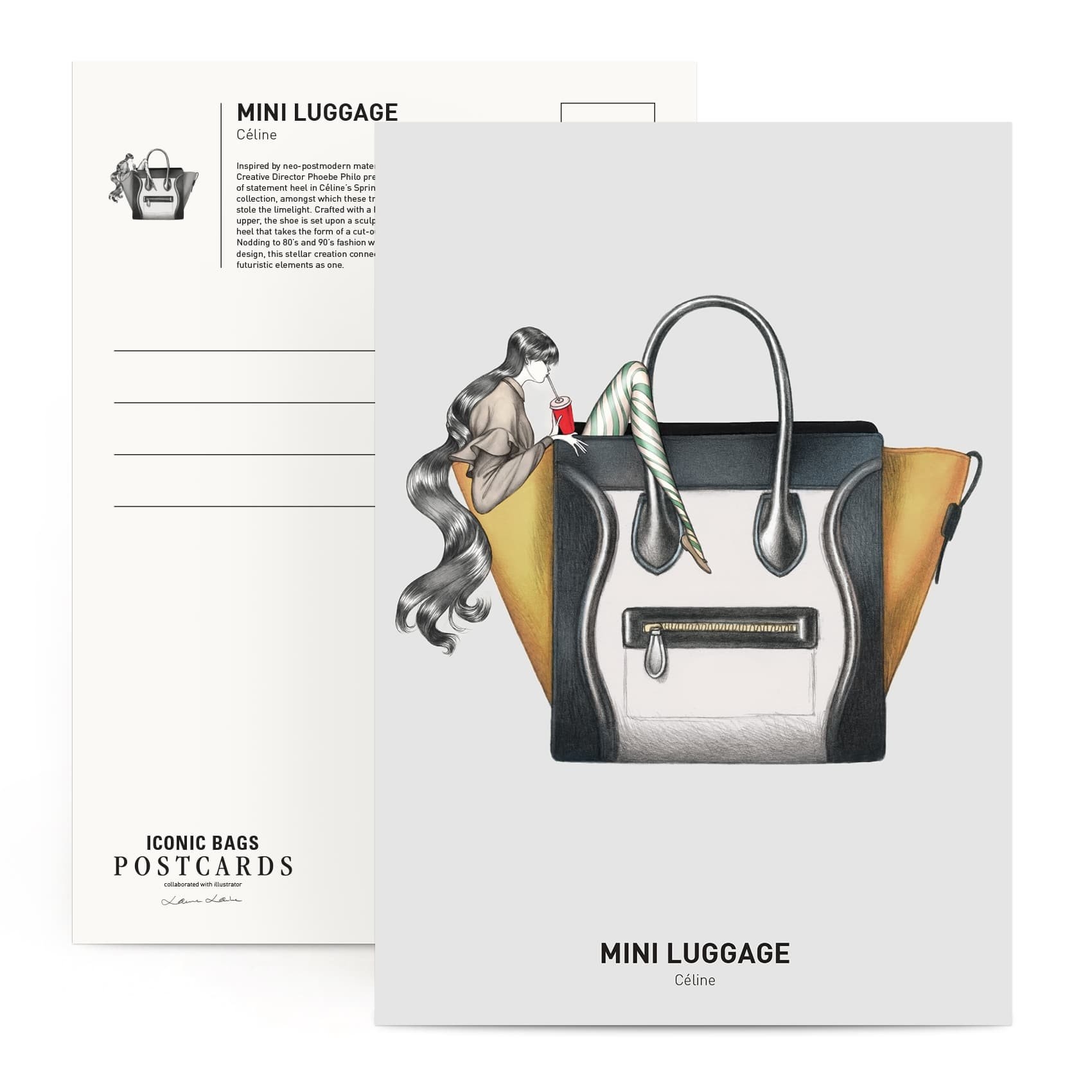 • 每張明信片背面有各個包款的設計理念介紹