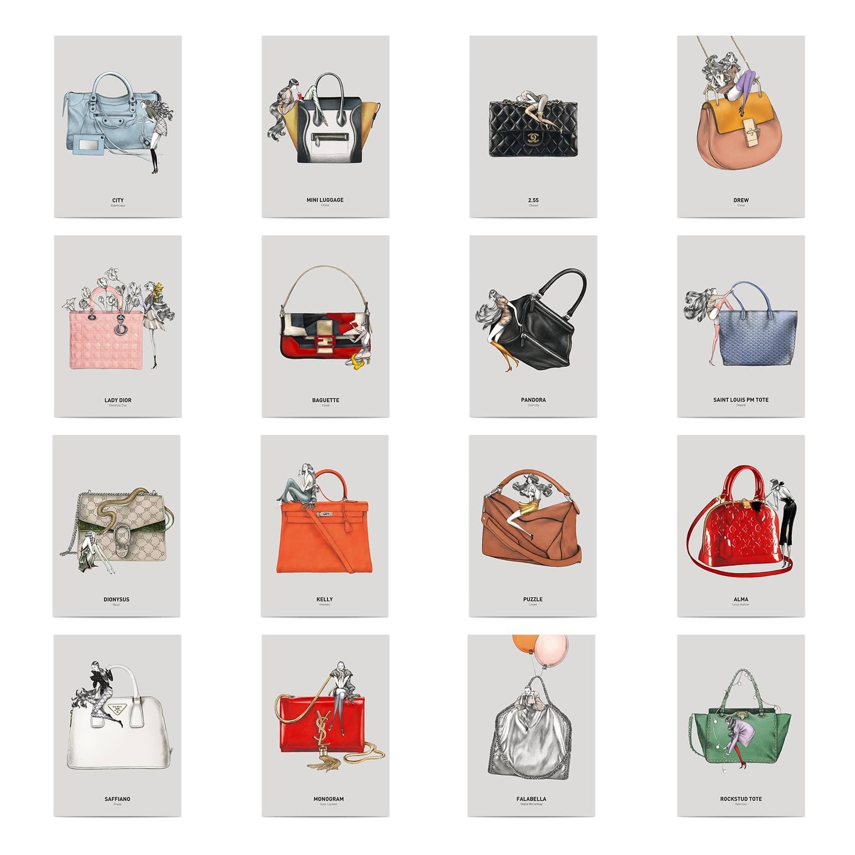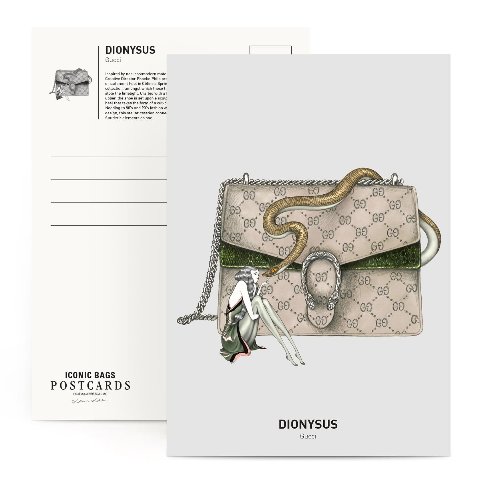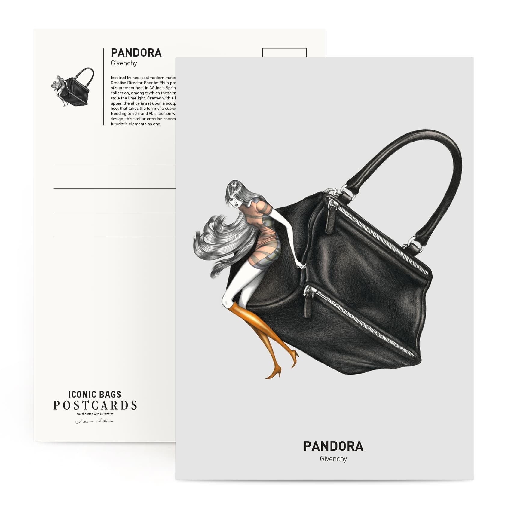 • 每張明信片背面有各個包款的設計理念介紹